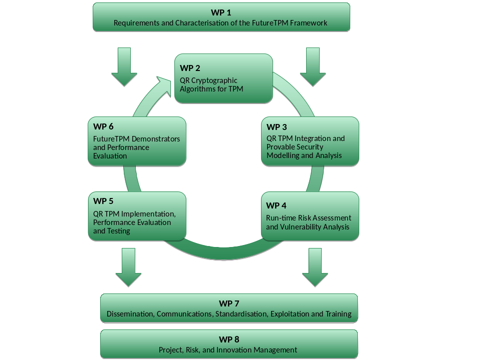 The FutureTPM project is planned to run for 36 months. It is organized into eight work packages (WP) with significant dependencies and expected synergies between them which are described shortly in the following: