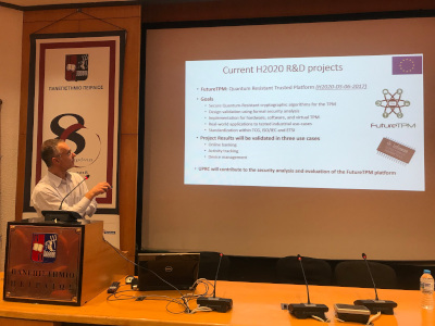 One PhD student of project partner SURREY gave a presentation of DAA-related research and briefly introduced the FutureTPM project. The title of the presentation was "Direct Anonymous Attestation in the Wild". In addition to that partner DTU participated.
