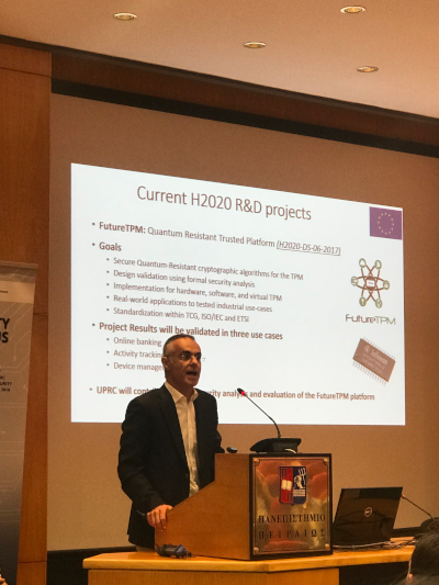 ENISA and the Department of Digital Systems of University of Piraeus organized a workshop in order to assess the need for Privacy Enhancing Technologies in the greater area of Network and Information Security. The workshop was aimed towards the research and academic community to discuss ongoing initiatives and future directions. The workshop took place in 22/11/2018 at the University of Piraeus. Prof. Christos Xenakis from UPRC introduced the FutureTPM project to show its goals, its advantages, the progresses carried out and the future actions.
